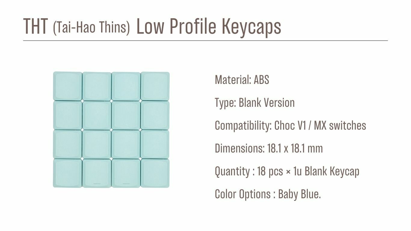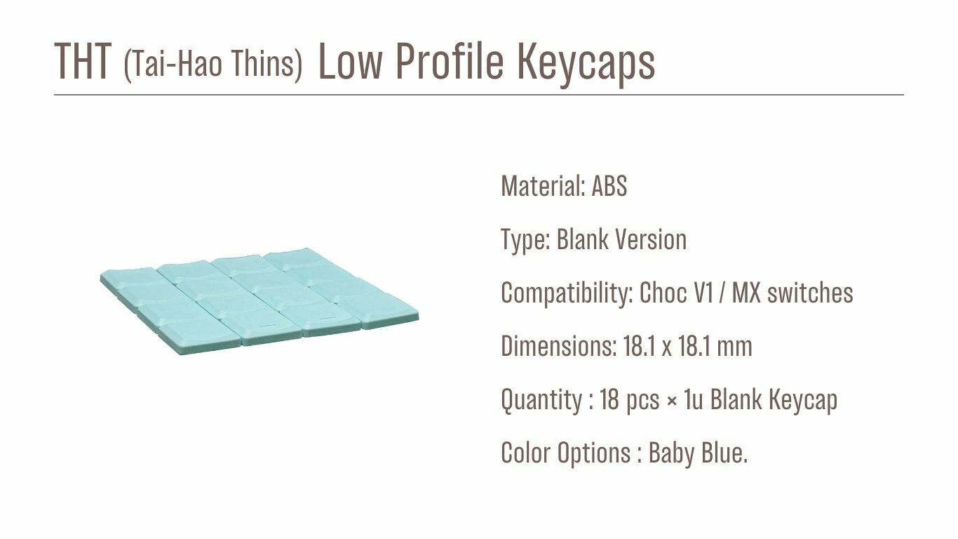 THT (Tai-Hao Thins) Low Profile Keycaps (Blank) - ABS Baby Blue-18PCS (16 blank + 2 homing per set)
