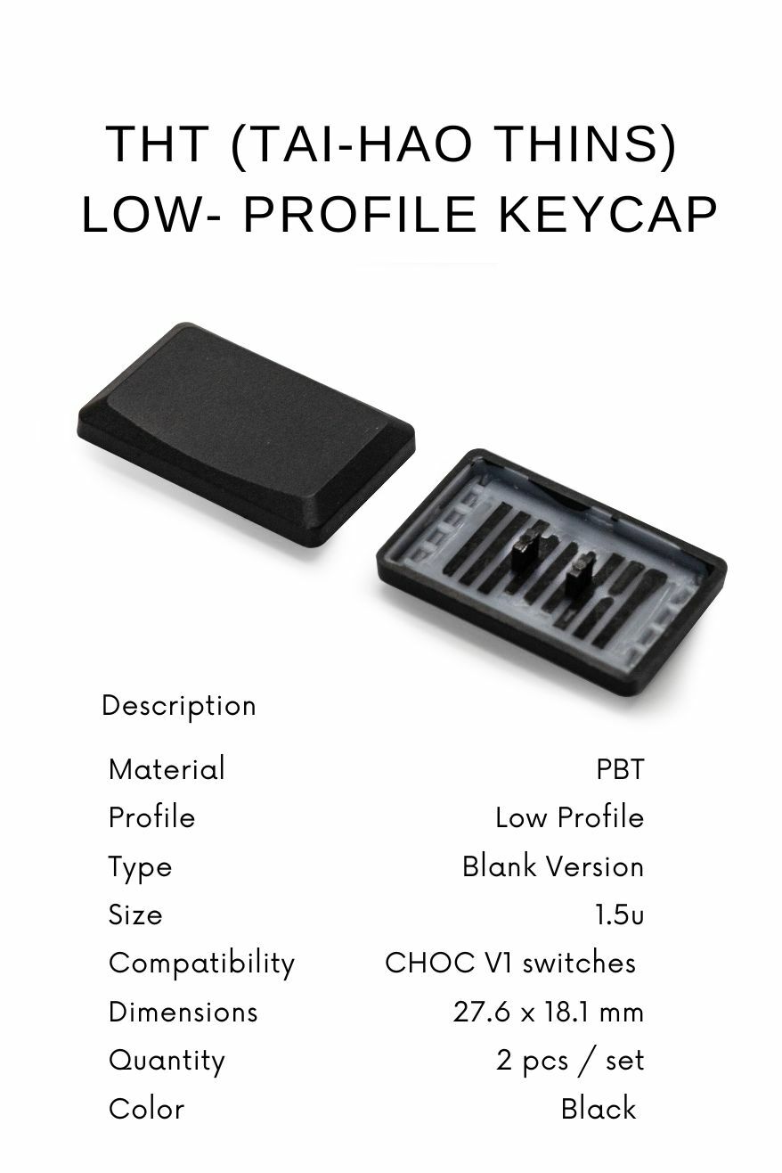 THT (Tai-Hao Thins) Low Profile Keycaps (Blank) - PBT Black 2PCS (1.5U)