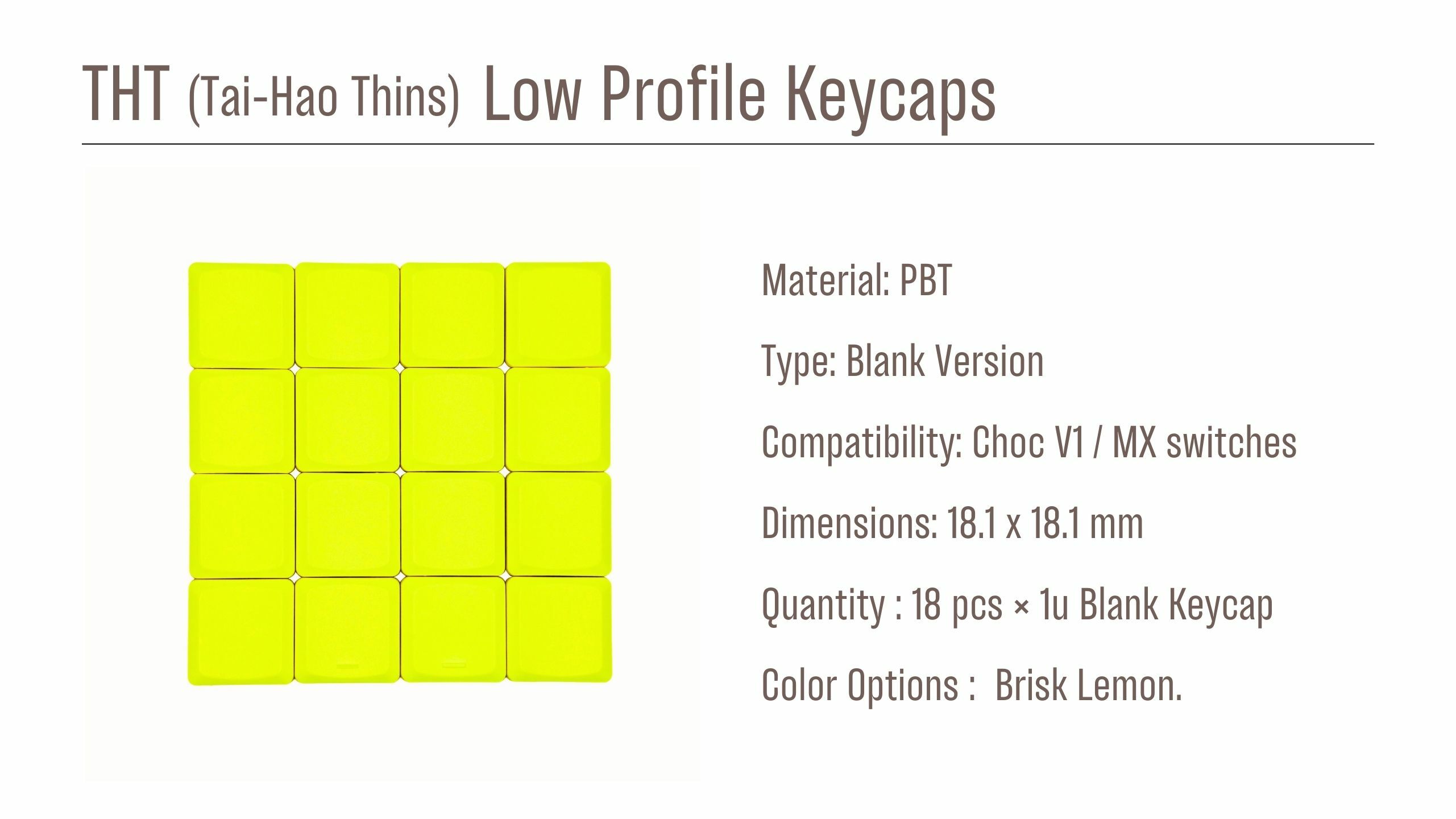 THT (Tai-Hao Thins) Low Profile Keycaps (Blank) - PBTBrisk Lemon-18PCS (16 blank + 2 homing per set)