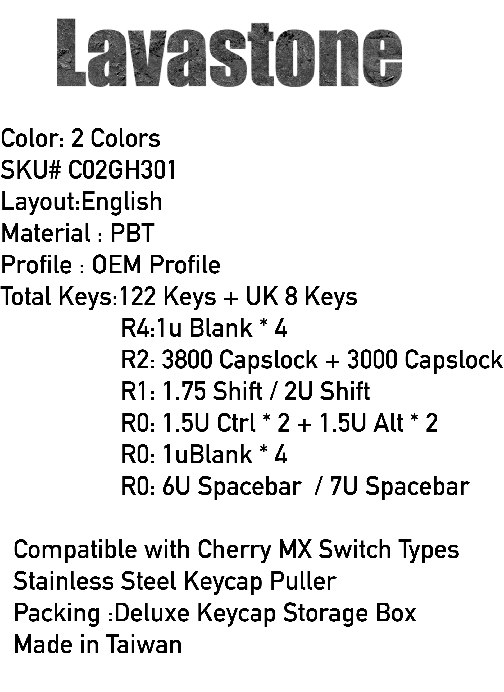 PBT-130 KEYS Lavastone DS Keycaps SKU#C02GL201