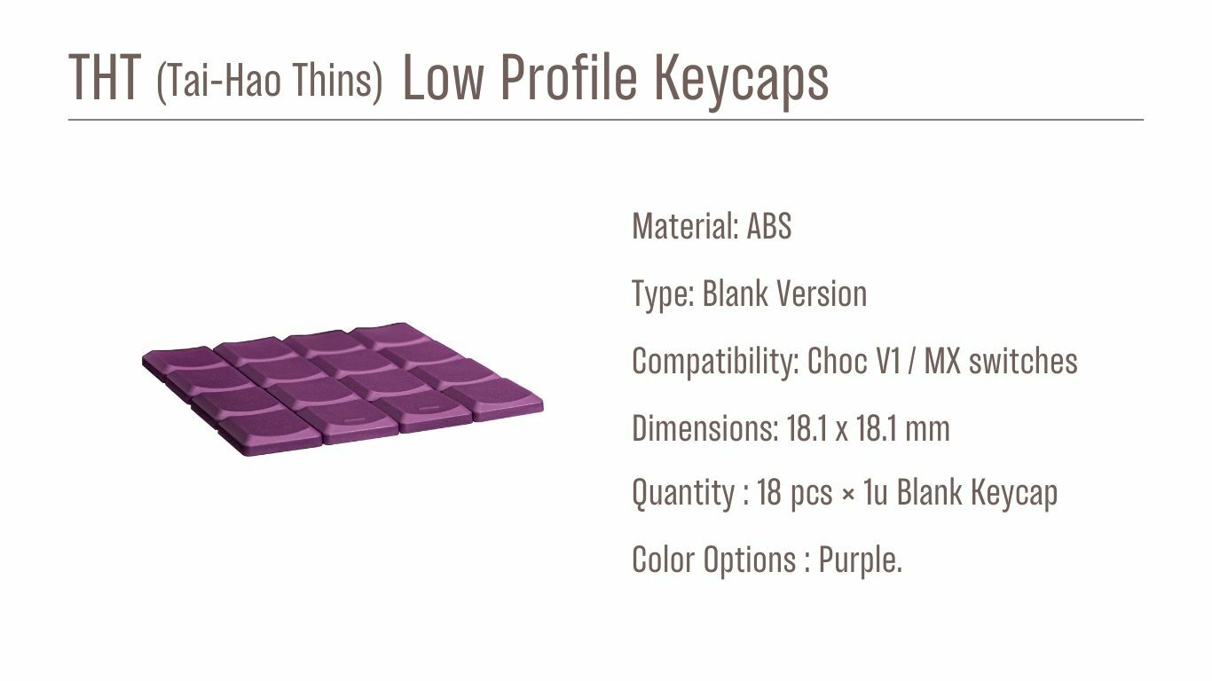 THT (Tai-Hao Thins) Low Profile Keycaps (Blank) - ABS Purple 18PCS (16 blank + 2 homing per set)