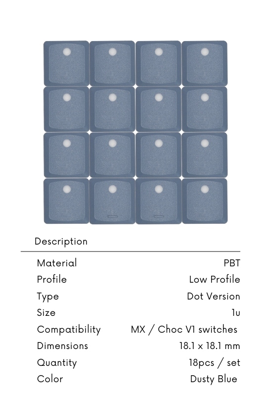 THT (Tai-Hao Thins) Low Profile Keycaps – PBT 1U DOT Backlit–Dusty Blue – Set of 18 (16 Blank + 2 Homing Keys)
