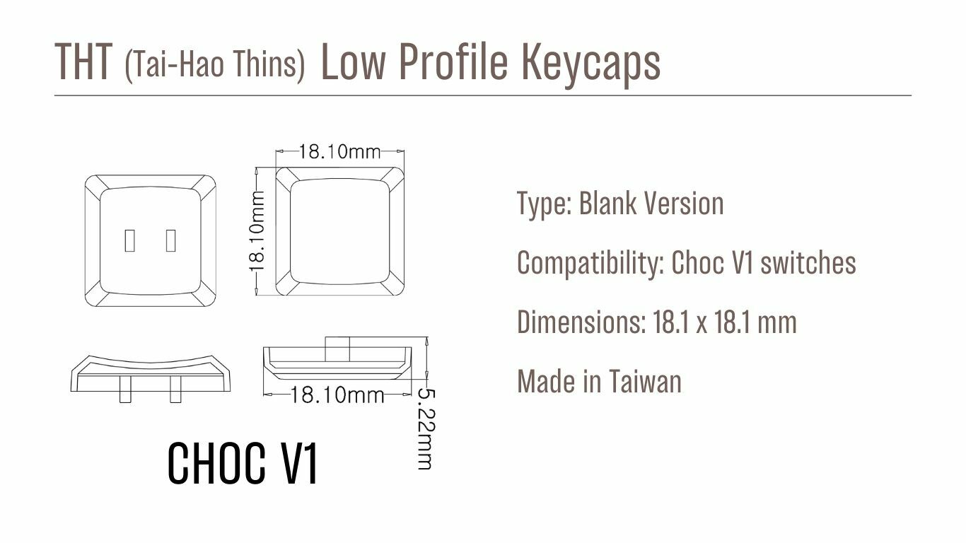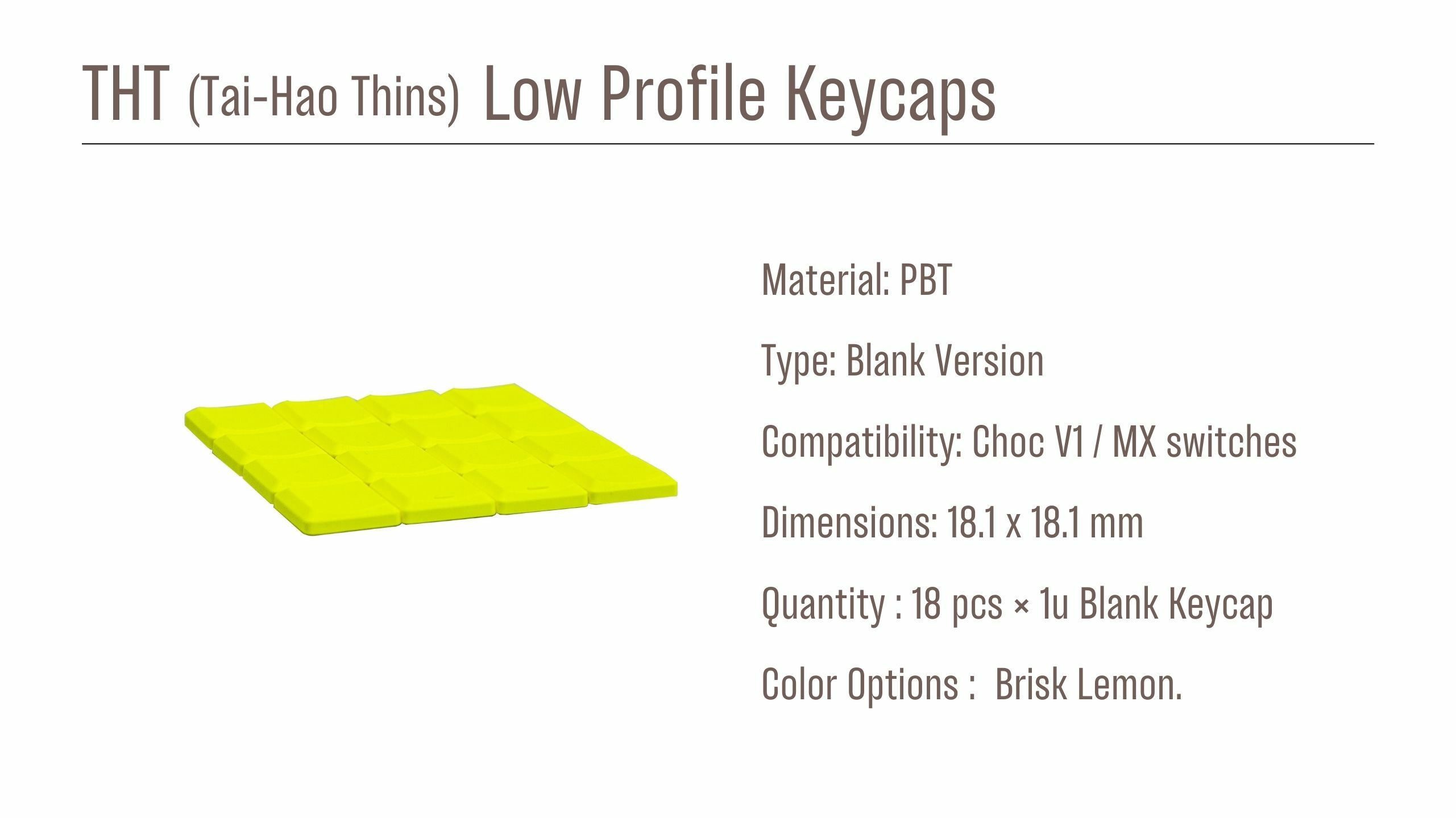THT (Tai-Hao Thins) 矮軸鍵帽 ( 無刻 ) - PBT-亮檸--18PCS (16 pcs 無刻 + 2 pcs 盲線)