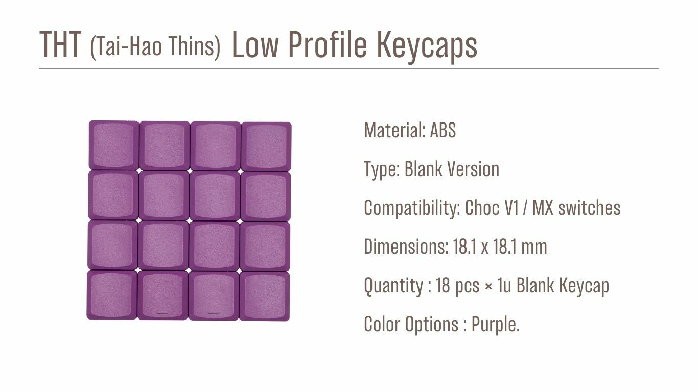 THT (Tai-Hao Thins) 矮軸鍵帽 ( 無刻 ) - ABS-紫18PCS (16 pcs 無刻 + 2 pcs 盲線)