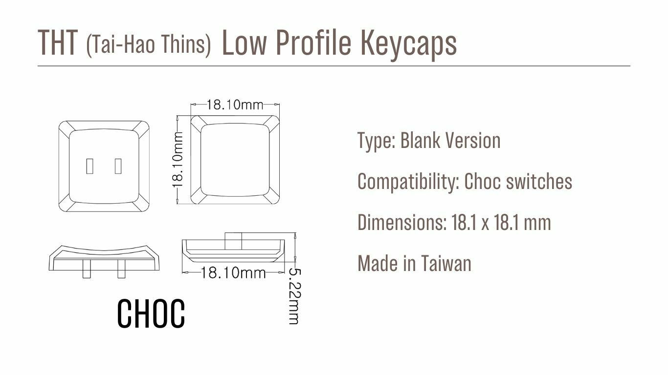 THT (Tai-Hao Thins) 矮軸鍵帽 ( 無刻 ) - ABS PBT-白18PCS (16 pcs 無刻 + 2 pcs 盲線)